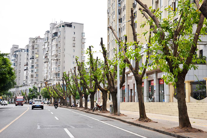 贛州生態(tài)環(huán)境有限公司管養(yǎng)部門針對市民們反映的情況,立即組織人員現(xiàn)場查看、清點,并制定了科學(xué)的修剪方案。作業(yè)人員在做好完整的道路施工安全措施后,利用登高車云梯,配合修剪專用油鋸、枝剪等專業(yè)修枝工具,對樹木進行修剪,并及時將修剪下的大樹枝清運,保證道路行人車輛的安全通行。經(jīng)過作業(yè)人員的修剪和規(guī)整,整條路都更加通透和整齊了,不僅解決了周邊居民住宅的采光問題,也減少了行道樹倒伏的安全隱患。