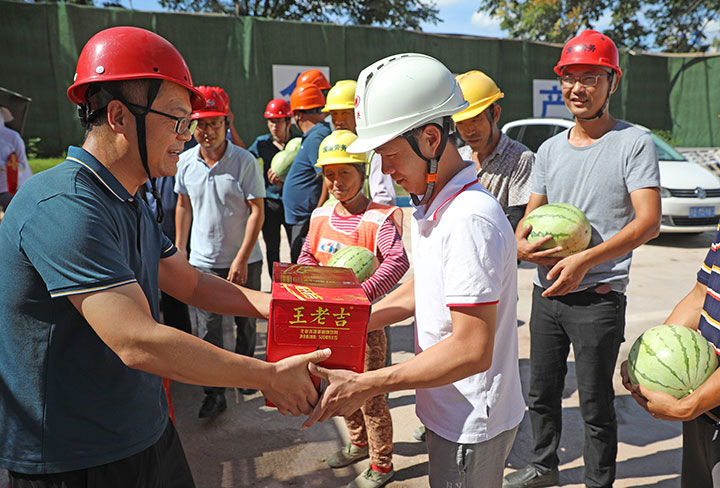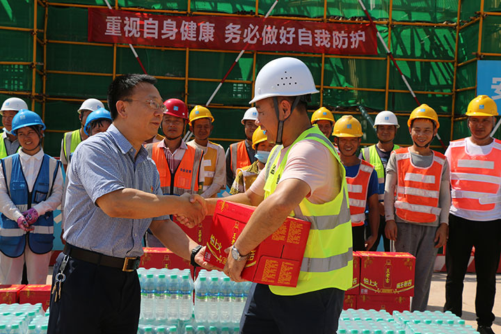 8月26日至27日,集團監(jiān)事會主席陳孝榮、黨委副書記黃家偉、財務(wù)總監(jiān)梁曉斌等帶隊,分成5個慰問組,分別來到蟠龍大橋、鳳崗嘉苑住宅小區(qū)、人才小鎮(zhèn)住宅小區(qū)一期等工程項目工地走訪慰問高溫作業(yè)一線職工,為他們發(fā)放西瓜、涼茶、礦泉水等解暑物品,送來一絲清涼;關(guān)心詢問他們的身體情況和工作困難,囑咐他們在高溫工作時勞逸結(jié)合、自我調(diào)節(jié),建立、落實錯時工作制,做到合理安排工作時間,盡可能避開高溫時段,防止高溫中暑,確保施工安全和身體健康。工程管理公司、生態(tài)投資公司有關(guān)負責(zé)人以及集團工會、文化宣傳部相關(guān)人員參加慰問。