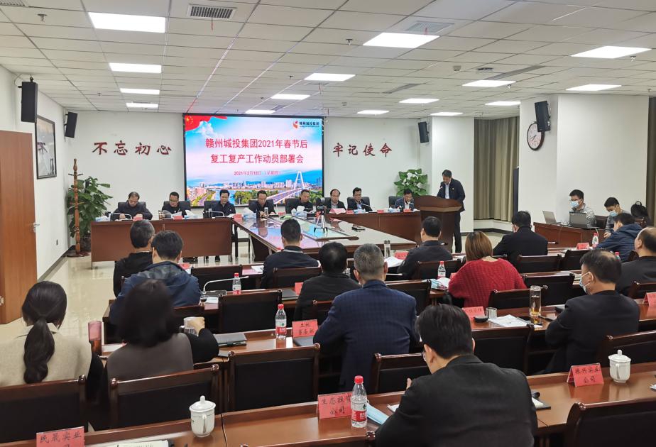 2月18日晚上,贛州城投集團(tuán)召開2021年春節(jié)后復(fù)工復(fù)產(chǎn)工作動員部署會。集團(tuán)黨委副書記(主持工作)、總經(jīng)理李國泉主持會議并講話,集團(tuán)其他高管出席會議,全體中層等參加會議。