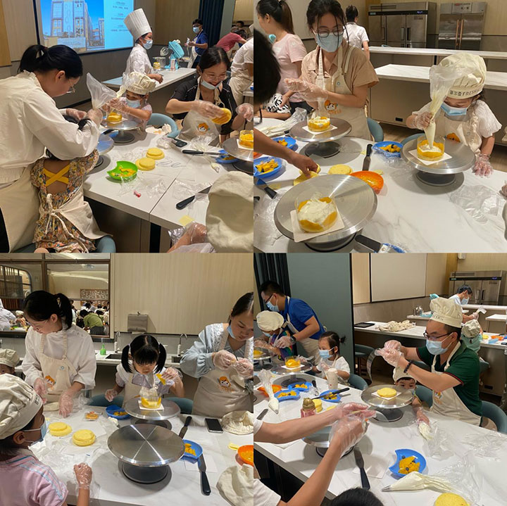 隨后,大家大手拉小手一起參觀菲爾雪生產(chǎn)車間,在專業(yè)蛋糕師的指導下,員工與孩子們充分發(fā)揮創(chuàng)意,一起動手為蛋糕進行裝點、裱花,制作品嘗屬于自己的親子蛋糕,整場活動在歡聲笑語中落下帷幕。