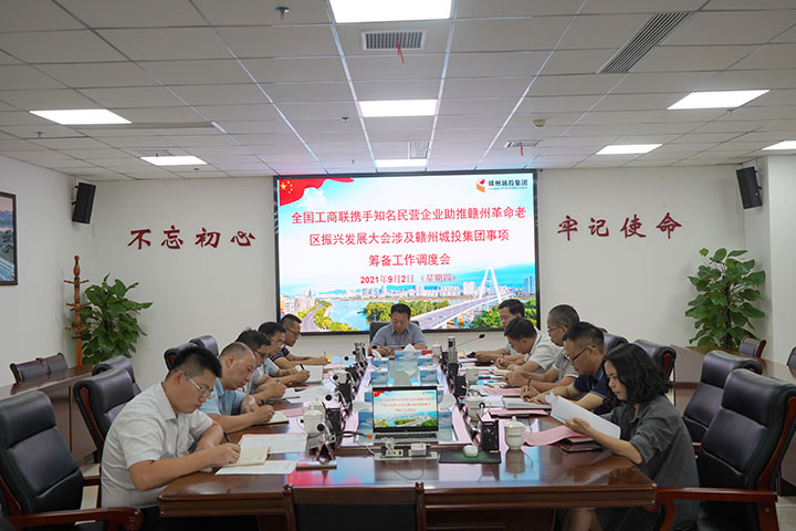 9月2日,贛州城投集團(tuán)黨委召開全國(guó)工商聯(lián)攜手知名民營(yíng)企業(yè)助推贛州革命老區(qū)振興發(fā)展大會(huì)所涉事項(xiàng)籌備工作調(diào)度會(huì)。集團(tuán)黨委副書記黃家偉主持會(huì)議并講話,集團(tuán)在家的高管出席,集團(tuán)各部門、相關(guān)子公司負(fù)責(zé)人參加會(huì)議。