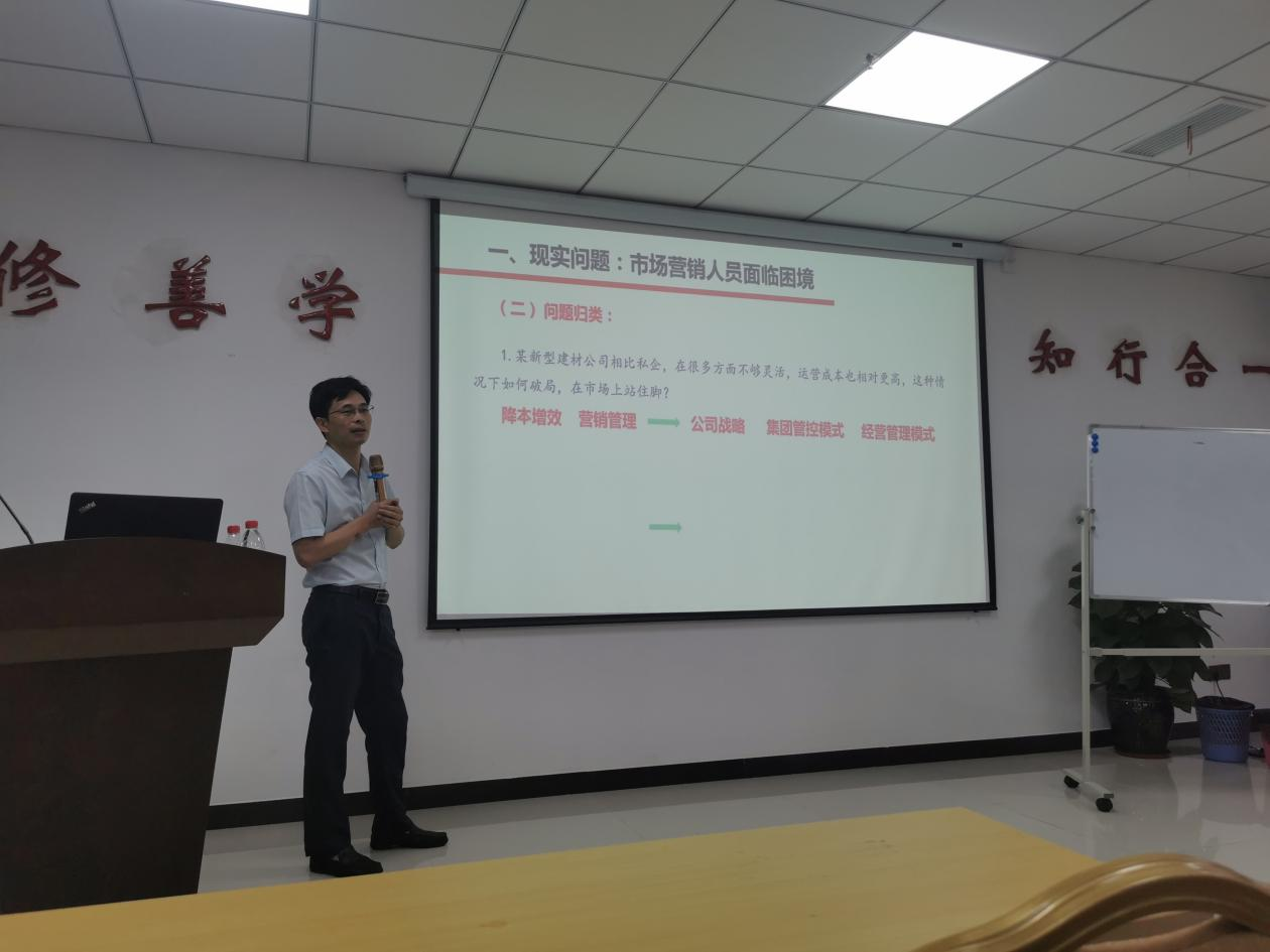 在培訓(xùn)會(huì)上,鄒國良教授闡述了市場(chǎng)營銷人員面臨的困境、全面梳理了目前公司發(fā)展可能存在的問題,從業(yè)績(jī)持續(xù)改善及市場(chǎng)營銷方面作為突破口,提出了破解問題的工作方法及應(yīng)用。課堂上,為活躍學(xué)習(xí)氣氛,鄒國良教授與學(xué)員進(jìn)行互動(dòng)探討,并對(duì)提出的問題進(jìn)行了細(xì)致解答。