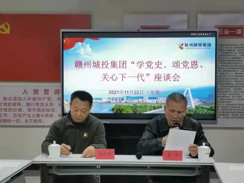 近日,贛州城投集團關工委召開"學黨史、頌黨恩,關心下一代"座談會,集團黨委副書記黃家偉出席座談會并講話,原集團紀委書記、離退休老員工代表奚平,以及集團部分青年員工代表等15人參加座談。