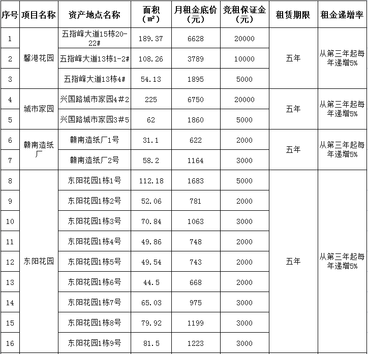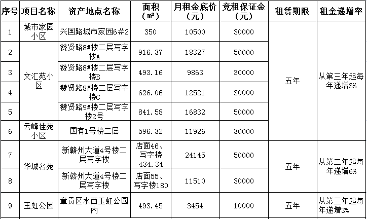 贛州振興實業(yè)有限責(zé)任公司委托江西潤資拍賣有限公司,定于2020年10月27日10:00開始在贛州市公共資源交易中心(長征大道9號)進(jìn)行國有資產(chǎn)公開招租,現(xiàn)歡迎符合條件的單位或個人前來報名參加競租。