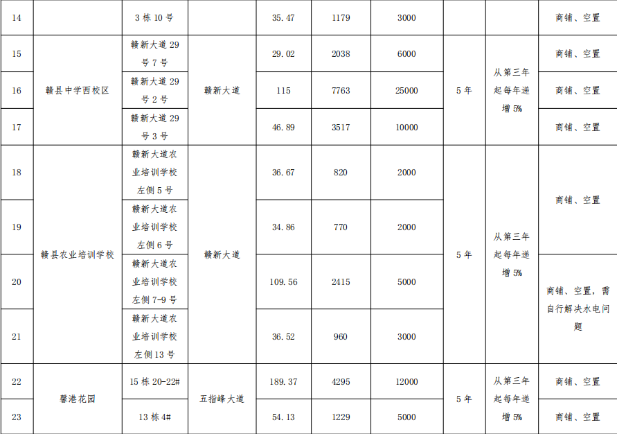 贛州振興實業(yè)有限責任公司委托江西江南拍賣有限公司,定于2021年9月29日10:00開始在贛州市公共資源交易中心(長征大道9號)進行國有資產(chǎn)公開招租,歡迎符合條件的單位或個人前來報名參加競租,現(xiàn)將有關(guān)事項公告如下: