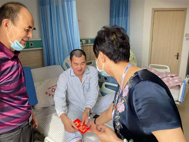 病房內(nèi),慰問小組詳細(xì)了解了職工家屬的病情及身體狀況,囑咐其安心養(yǎng)病,早日恢復(fù)健康。家屬對集團黨委表達(dá)了真摯的感謝,并表示,此次慰問讓他深切感受到了“城投大家庭”的溫暖,他一定會好好配合治療,爭取早日康復(fù)出院。