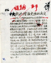 1941年7月1日,中共中央政治局通過的《關(guān)于增強黨性的決定》(部分)。(中央檔案館藏)