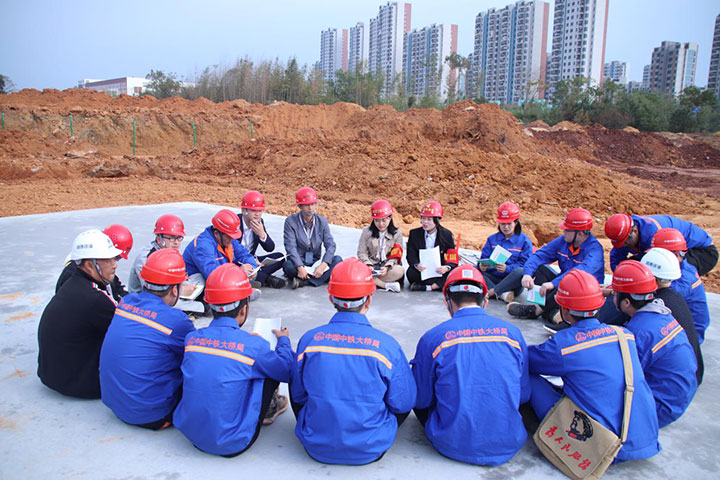 “城投廉音”宣講人在中國南方稀有金屬貿(mào)易集散中心項目為職工宣講集團(tuán)相關(guān)制度