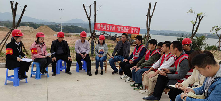 “城投廉音”宣講人在贛州中心城區(qū)建筑垃圾資源化利用及水西棄土場項目為職工宣講集團(tuán)相關(guān)制度